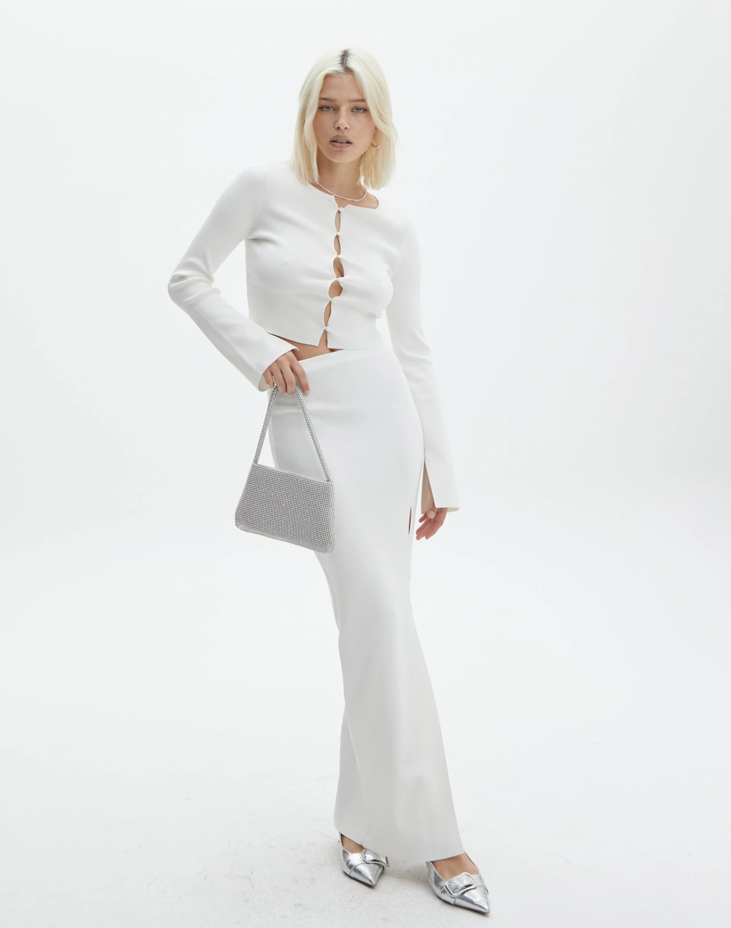 Ribbed Knit Button Side Maxi Skirt